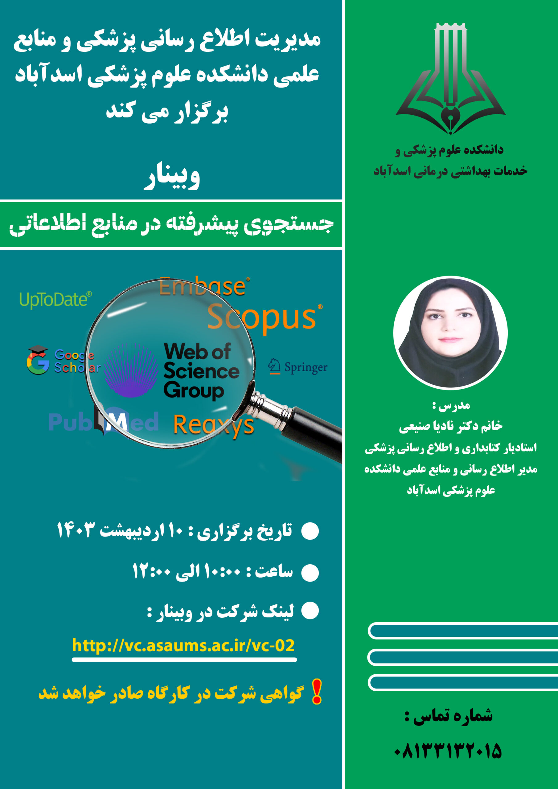 مدریت اطلاع رسانی پزشکی و منابع علمی دانشکده علوم پزشکی اسدآباد برگزار می کند: